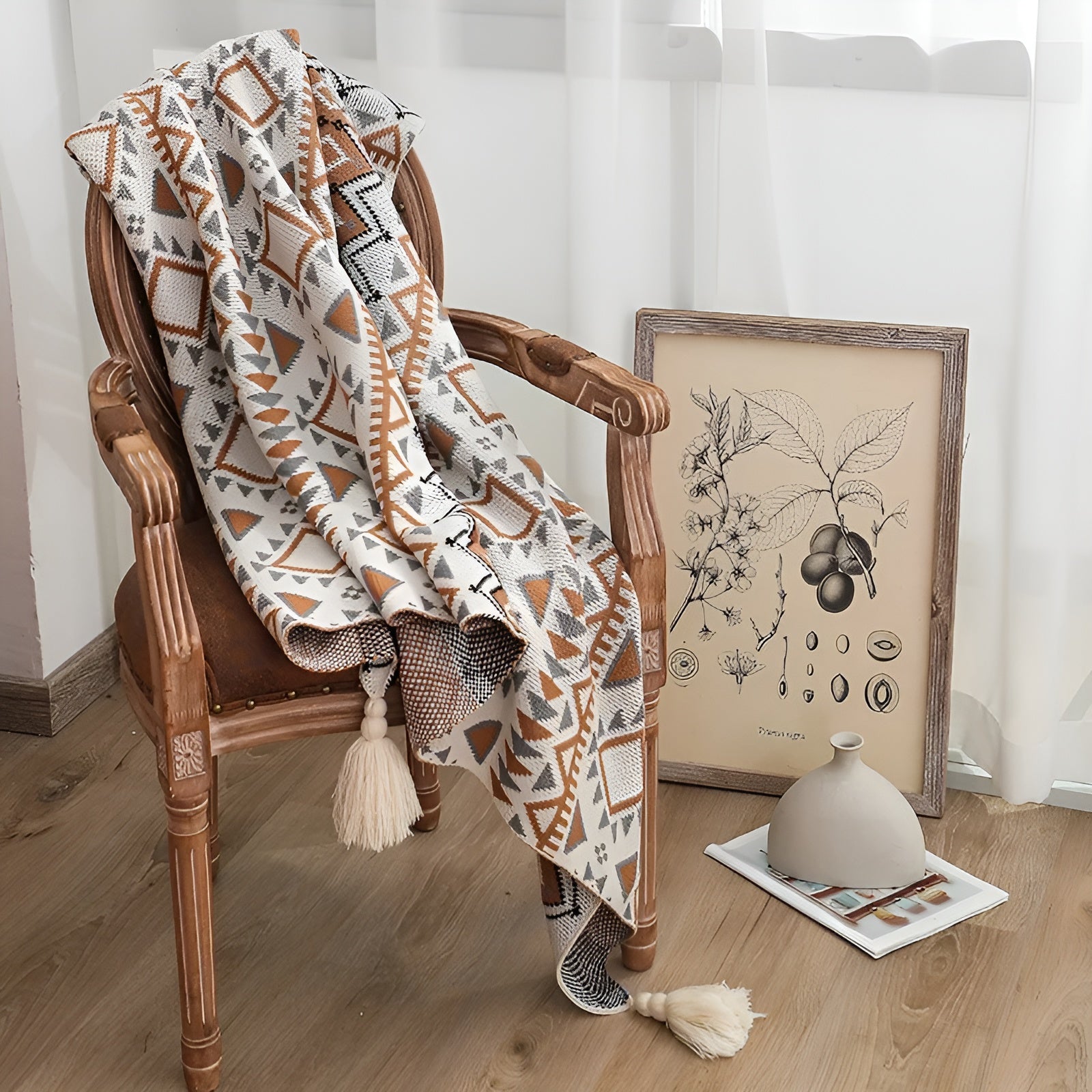A cozy geometric throw that adds warmth, texture, and a rustic southwestern charm to any space.