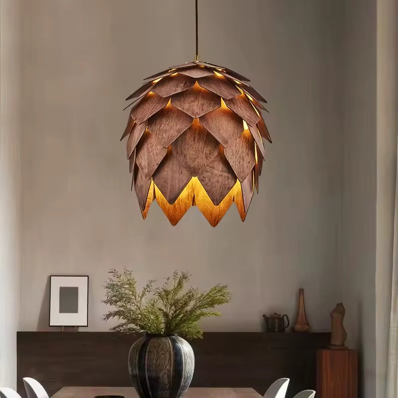 Wooden Pine Cone Pendant Light